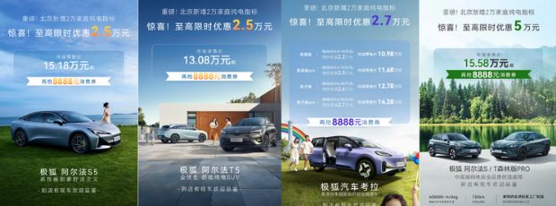 【ARCFOX极狐推至高5万限时优惠】我们从ARCFOX极狐官方了解到,面对北京新增2万元新能源纯电指标,其针对全系车型推出至高可享受五万元的优惠。