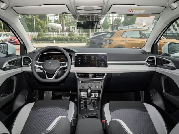 车内来看,该车配备了全液晶仪表盘和大尺寸中控屏幕,不过车内依旧保留了一些物理按键,方便常用功能操作。内饰采用了深浅相间的灰色和白色进行搭配,凸显出年轻时尚的气息,座椅采用了织物材质。