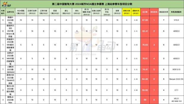 从比赛全程来看,极越01的表现极为丝滑,尤其是在NOA领航、红绿灯启停、进出匝道/辅路、岔路口选择、进出环岛等项目中,均取得了该项满分成绩。
