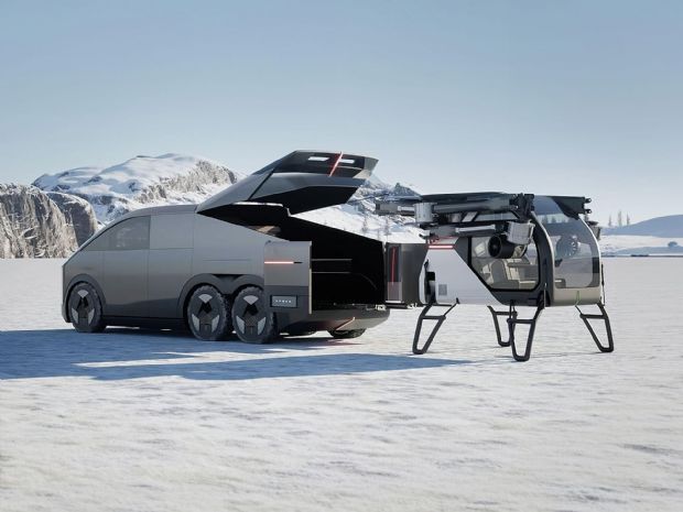 该车将采用增程式动力系统,并可给飞行器补能,同时还将配备6×6全轮驱动和后轮转向功能,内部将配备4-5人智能驾驶座舱。飞行体为国内首款面向个人用户开发的有人驾驶纯电动垂直起降航空器,采用分布式电推进系统,满足单点失效安全要求,具备手动/自动两种驾驶模式,拥有270°的全景双人座舱。(来源/汽车之家)