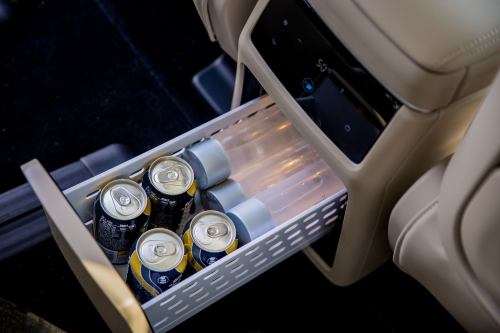这也正是魏牌高山MPV车载冰箱设计的独特之处,在不占用乘客舒适乘坐空间的前提下,创新巧妙地将车载冰箱嵌入到主副座驾间,实现了高雅美观、空间利用率与用户体验的三重升级。同级最大12.5L冰箱容积,通过双层设计使得冰箱内部空间更加灵活,可以根据需要存放不同种类的物品。比如,上层可以存放饮料和酒水,下层则可以放置水果和零食。同级唯一采用前排扶手箱、后排抽屉式双开口设计则方便了用户在不同位置取用物品,无论是前排还是后排的乘客,都能轻松地享受到冰箱带来的便利。
