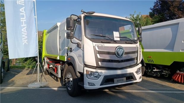 在活动现场,欧航欧马可展出了2款纯电环卫车底盘、4款新能源环卫装备。