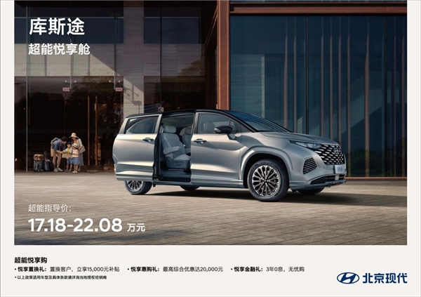 8月26日,北京现代2024款库斯途焕新上市,5款车型为17.18万元起,并推出三重“超能悦享购礼遇”:置换客户,立享15000元补贴悦享置换礼;最高综合优惠达20000元悦享惠购礼;3年0息,无忧购悦享金融礼。此次2024款库斯途还新增3种单色加双拼色车身,满足用户的个性化需求。