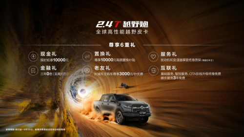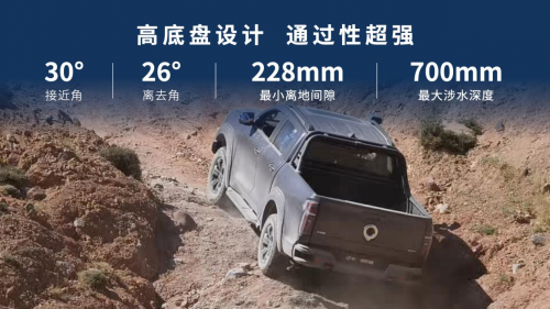 2.4T越野炮定位“全球高性能越野皮卡”,以新时代越野用车高标准打造,性能全面跃升,凭借够劲、够野、够安全三大硬核实力,为广大用户带来极致用车体验。