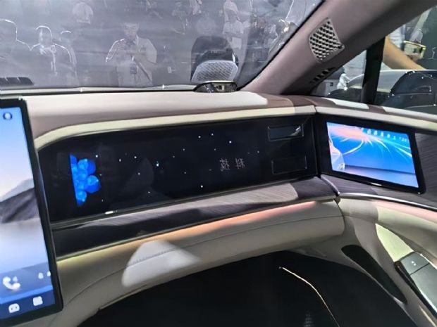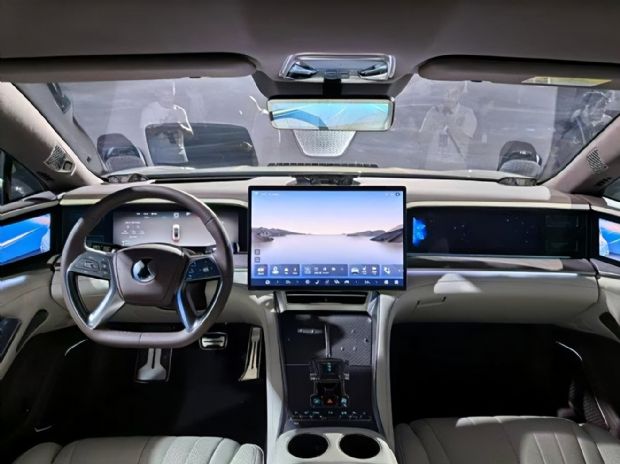 腾势Z9GT将会使用双环抱式的座舱布局设计,提供了深色和浅色两种内饰配色,车内共有5块屏幕,分别为13.2英寸液晶仪表盘、17.3英寸中控屏幕、13.2英寸副驾娱乐屏、后排中央控制屏以及HUD抬头显示,此外该车还可以选配外电子后视镜,配备上之后车内的屏幕更是增加到了7块之多,可谓是将科技感提升到了极致。