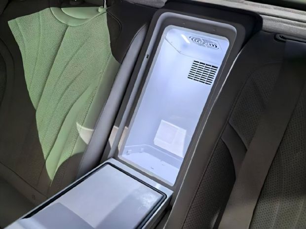 腾势Z9GT的另一大亮点配置就是车载冰箱了,该车将会配备前后双冰箱,前冰箱的容积为4L,后排冰箱的容积为10L,前、后冰箱都是可以支持最低-6℃的制冷和50℃的制热功能,冰箱的开关和温度设定则是可以直接通过中控屏幕来进行操作的。