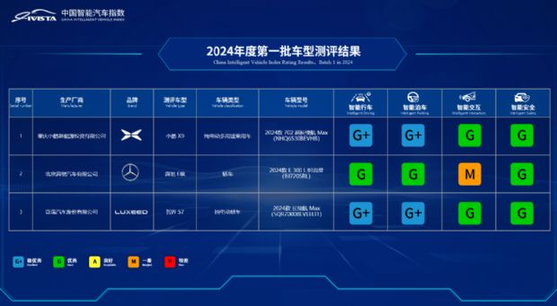 IVISTA中国智能汽车指数2024年第一批次测评结果概览