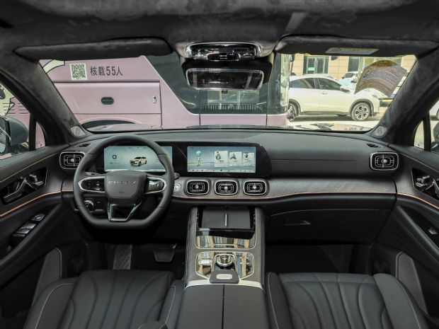 走进车内,新车内饰基本沿用现款设计,中控配备24.6英寸连屏,搭载8155芯片,“回”字形空调出风口呈现出一定的设计感,前排配备主驾按摩及零重力女王副驾,另外高配车型还将搭载SONY 14扬声器环绕音响(有头枕音响)、256色光瀑音律氛围灯、C-PURE奇瑞净立方绿色座舱+高档智能香氛系统等配置。座椅方面,该车提供5/7座可选,二排和三排座椅座椅放倒后可以拓展至2021L后备厢空间。
