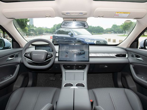内饰和当前同级别车型风格类似,都是这种简约的科技风,除方向盘之外,很难看到物理按键,几乎将所有的功能都集中在了这个大屏幕上。新车使用了8.8+15.6英寸的双屏,中控屏幕内置了星海OS系列,支持手机互联、可见即可说和连续语音控制等,并支持手机的远程控制。