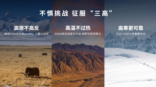 2.4T越野炮不仅针对动力进行了升级,更实现了性能的全面进阶,可轻松应对高原、高温、高寒等极端环境。高原不高反,海拔4700米高原仍可输出400N·m最大扭矩,高原穿越无压力;高温不过热,专项配备850W高性能散热风扇,可选装硅油风扇,匹配行业首创越野热管理模式,满足高温天气及持续大负荷越野工况下用车需求;高寒更可靠,采用同级领先的AGM大容量蓄电池,容量高达92Ah,电容稳定性、低温可靠性更高,面对北方寒冬,冷启动也可一键搞定!
