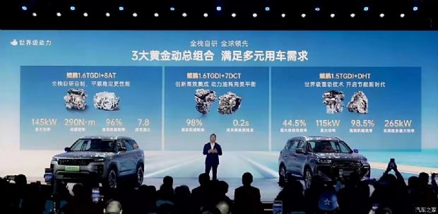 动力上,新车提供1.6T+8AT或1.6T+7DCT两种动力总成,这款1.6TGDI发动机最大功率为145kW,峰值扭矩290N·m,WLTC百公里油耗7.09L。根据车型不同,分别匹配8速手自一体变速箱和7档湿式双离合变速箱。