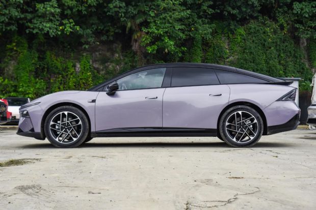 新车的侧身线条流畅、动感且富有层次。P7+采用了双色车身设计,水切以上为黑色,水切以下为车身主色,配合粗壮的黑色门槛装饰件,?视觉效果相当不错。