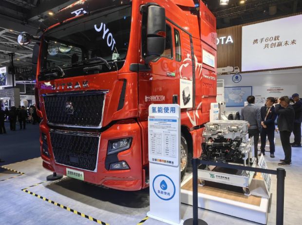氢能作为未来清洁能源的重要组成部分,一直是丰田重点布局的领域。刘鹏认为,氢能技术将在推动汽车产业低碳转型中发挥关键作用。在进博会上,丰田展示了多款氢燃料电池系统,包括全球首次展出的额定功率为300kw的TL Power300燃料电池系统(双系统)。该系统已率先搭载在49吨燃料电池牵引车上,展现了丰田在商用车氢能领域的领先地位。