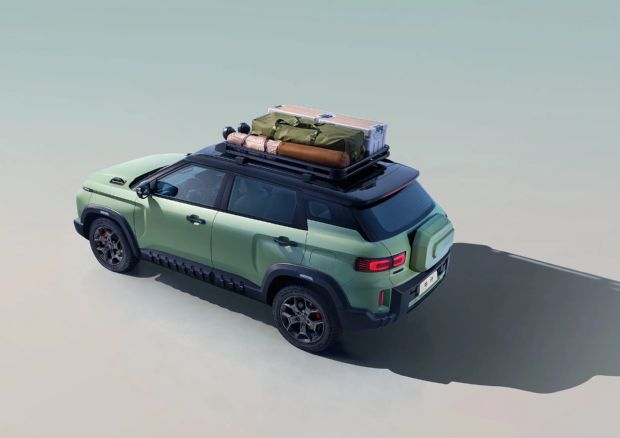 车尾的造型也足够有趣。搭载矩形LED尾灯,后包围也采用了塑料原色的设计,与车头、车侧形成呼应。车尾配备了一个“小书包”,它并非备胎,而是一个防水的储物空间,采用防水设计,内置网袋分离区,可在涉水、海边等场景中可收纳雨伞、雨靴等一些你不想放在车内,会把车内弄得很潮湿的物品。