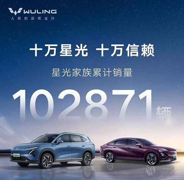 日前五菱汽车官方宣布,旗下五菱星光家族累计销量突破10万辆,达到102871辆,新车起售价7.98万元起,包括五菱星光PHEV、五菱星光EV、五菱星光S PHEV、五菱星光S EV等车型。