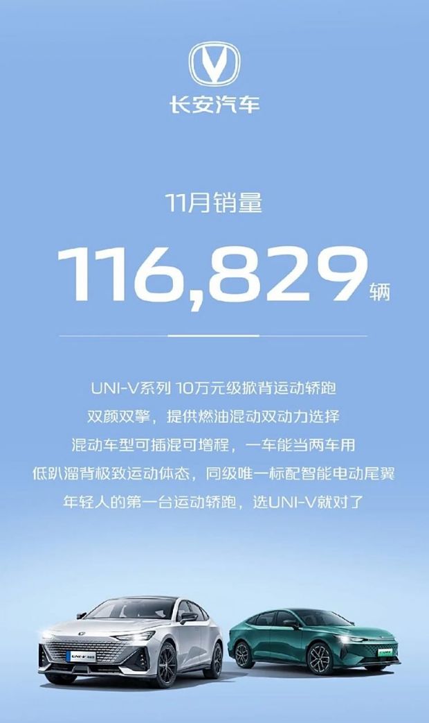 具体品牌销量方面,11月长安启源销量达到18455辆;深蓝汽车销量超过3万辆,达到36026辆;阿维塔销量破万辆,达到11579辆;长安汽车品牌销量超过11万辆,达到116829辆;长安凯程11月销量14141辆。