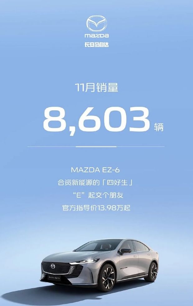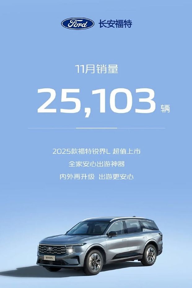 合资品牌方面,长安福特11月销量25103辆,同比增长31.78%;长安马自达销量8603辆,同比减少8.09%。
