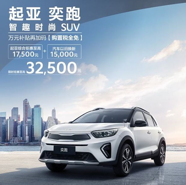 1、起亚奕跑官方售价6.98万元起,综合钜惠至高1.75万元,以旧换新补贴1.5万元。