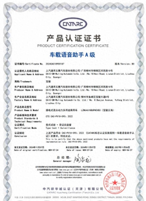 近日,宝骏品牌宣布其旗下首款智能长续航SUV——宝骏云海,成功通过了中汽研汽车检验中心(天津)有限公司的严格测试,荣获行业首个紧凑型SUV车载语音助手A级认证。这一认证标志着宝骏云海在车载语音助手领域取得了卓越成就,其智能交互体验得到了权威认可。
