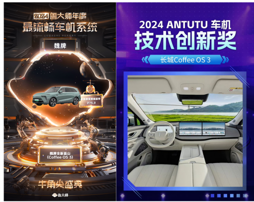 除了强悍的动力性能外,依托于长城汽车行业第一梯队的Coffee OS 3智能座舱,魏牌全新蓝山最近赢麻了!1月6日,在鲁大师2024牛角尖颁奖典礼上,魏牌全新蓝山的智能座舱系统以275.3的总成绩斩获2024年度新能源车机流畅榜冠军;1月7日,在安兔兔的车机年度评奖中,魏牌全新蓝山所搭载的长城Coffee OS 3以出色优化能力一鸣惊人,继连续7个月拿下安兔兔车机版性能榜冠军的,再度斩获安兔兔车机年度评奖之技术创新奖!卓越的技术表现背后,离不开长城汽车长期坚持长期主义的技术积累和创新精神。