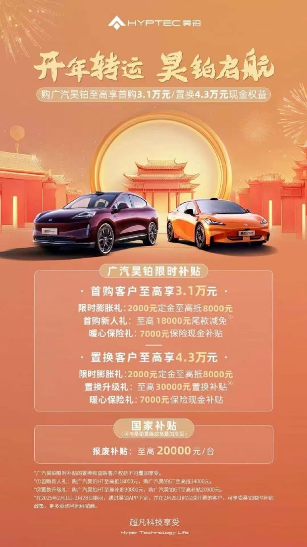 广汽昊铂2月6日推出限时补贴,最高可享4.3万元现金权益!