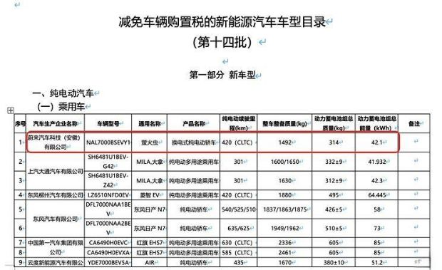 从第十四批减免车辆购置税的新能源汽车车型目录中可知,firefly萤火虫将配备42.1kWh的电池组,CLTC纯电续航里程达到420公里。这样的续航表现,在同级别车型中颇具竞争力,满足日常通勤和城市周边游绰绰有余。