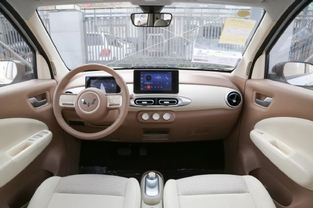 进入车内,宏光MINIEV四门版采用“萌趣浪漫”设计语言。全新“焦糖奶油”内饰配色以浅浅的巧克力棕色为主色,搭配奶酪白色进行点缀,营造出温馨舒适的驾乘氛围。座椅采用了柔软且亲肤的材质,久坐也不易感到疲惫,缝线工艺精致细密,不仅提升了座椅的耐用性,还增添了一份精致感。方向盘采用了小巧的三幅式设计,握感舒适,上面集成了一些常用的控制按键,操作起来十分便捷。整体内饰饰板都进行了膨膨感圆润设计,通过对中控台、门饰板等位置的充气化处理,无论是视觉上还是触感上,都给人一种柔软、舒适的感受。车内的储物空间设计也十分贴心,中控台下方、车门内侧都设有大小合适的储物格,可以方便地放置手机、水杯、包包等物品。
