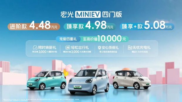 2月22日,五菱宏光MINIEV四门版正式上市。此次新车共推出3款配置,售价区间为4.48-5.08万元,一经亮相便吸引了众多消费者的目光。