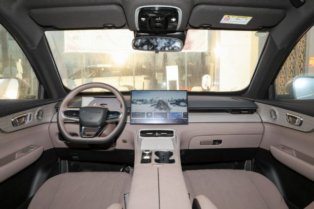走进车内,风云T8的内饰采用新能源简洁设计风格,大面积的翻毛皮材质,让车内质感瞬间提升,给驾乘者带来舒适又豪华的触感。15.6英寸大尺寸液晶屏内嵌雄狮车机系统,操作流畅,功能丰富,无论是导航、多媒体娱乐还是车辆信息显示,都能轻松实现,为驾驶者提供便捷的智能体验。