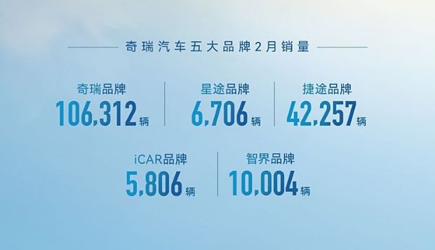 主打旅行+概念的捷途品牌,2月销售汽车42,257辆,展现出强大的市场活力。捷途品牌以其独特的市场定位和产品特色,吸引了众多追求个性化、品质化出行的消费者,成为奇瑞集团在细分市场的重要增长点。