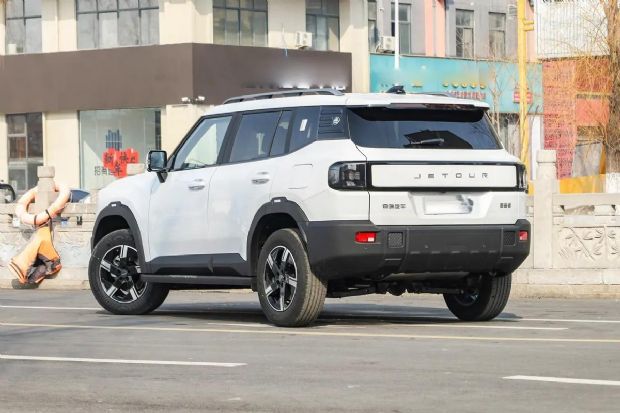 自由者延续了山海T1标志性的方盒子造型,但通过更多柔和曲线的运用,展现出刚柔并济的独特美学。前脸采用四叶草矩阵大灯,最远照射距离达185米,搭配带有"JETOUR"字母标识的镀铬中网,在保持硬派风格的同时更显精致。车身侧面配备全地形包围、熏黑轮眉和18/19英寸双规格轮毂,配合2810mm超长轴距与4706mm车长,营造出极具张力的视觉效果。车尾换装全新尾标设计,搭配高位刹车灯与双边共两出排气,将越野气息贯彻始终。