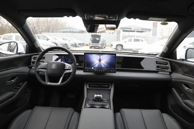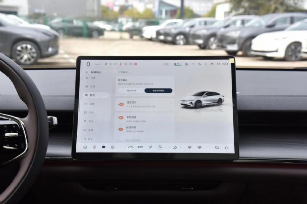 看完了空间,紧接着咱们再来看现在大家买车都很关注的智能化部分,首先智能座舱方面两车表现是都在线的,启源A07 140精英型搭载了长安的天域座舱,给到了15.4英寸中控大屏,以及同级唯一50英寸长距全信息AR-HUD;而秦L 120领先型,则搭载了DiLink100智能座舱,配置上给到了12.8英寸中控大屏。功能方面两车差距不大,像是在线导航/音乐、手机车机互联、手机APP控车、语音识别控制等功能两车都有配备,只不过启源A07 140精英型得益于高通8155芯片更高算力,以及更大尺寸中控屏、AR-HUD的加持,科技感和车机流畅度表现相对来说确实要好一些。