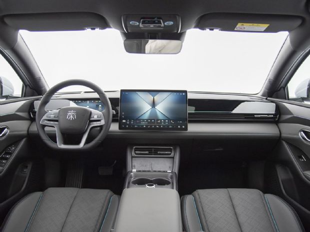 内饰层面,相比现款秦L新能源,新车格调更为优雅。中控台对烤漆饰板宽度进行收窄处理,在配色上准备了皓月米和玄空灰两种方案。高配车型更是武装到牙齿,配备8.8英寸全液晶仪表、12英寸W-HUD抬头显示以及15.6英寸悬浮式中控屏,副仪表台还贴心设有50W无线充电功能。