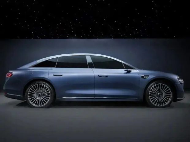 车身侧面,新车车顶线条呈非常流畅的弧形,车辆前后侧翼子板微微宽出车身,腰线平整地贯穿车身侧面,再结合隐藏式门把手、多条辐轮圈等设计,更显时尚。车身尺寸方面,新车长宽高分别为5160*2005*1485mm,轴距为3050mm。