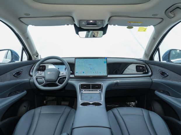 进入车内,对称式布局的仪表台简洁大气,10.25英寸全液晶仪表与15.6英寸悬浮Pad的组合,科技感十足。换装的家族样式四辐式多功能方向盘握感舒适,智驾版更是采用了简洁的怀挡式设计,操作便捷。同时,智能座舱高阶版-DiLink 100系统,接入DeepSeek大模型,支持AI全场景智能语音交互,让人车沟通更加自然流畅。