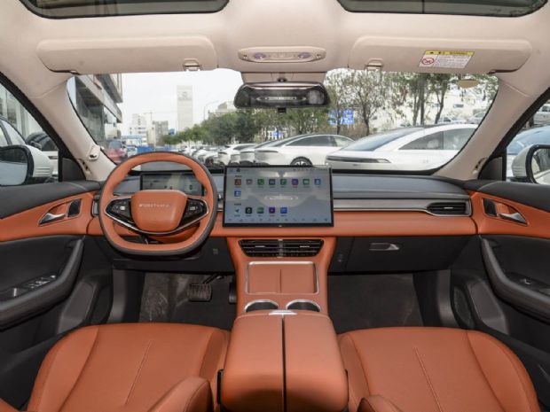 车内以平直中控台线条营造宽体视觉,双辐式多功能方向盘、14.6英寸悬浮式中控屏与12.3英寸全液晶仪表组成联屏系统,搭载最新一代Flink车机系统,支持语音交互、OTA升级。一体式运动座椅采用麂皮绒+皮质拼接,标配座椅加热/通风(高配);更有手机无线充电、全景天幕、64色氛围灯等配置,兼顾科技感与舒适性。