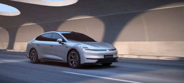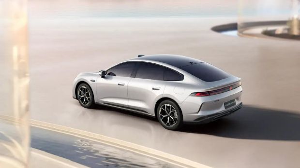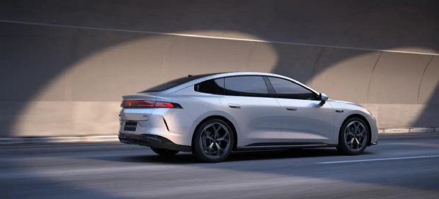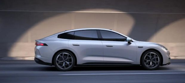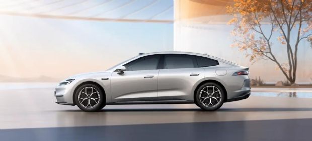 车身侧面,4885mm的车长搭配2922mm的超长轴距,营造出修长优雅的车身姿态。半隐藏式门把手与无边框车门、后视镜的组合,不仅提升了整车的时尚感,还能有效降低风阻。流畅的车身线条从前大灯一直延伸至车尾,勾勒出宛如轿跑般的动感轮廓,不难推测,其在风阻系数方面将会交出一份令人满意的答卷。