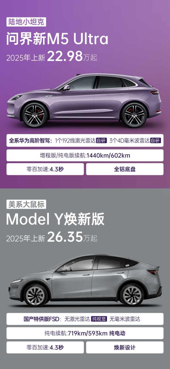 泊车场景中,问界新M5 Ultra更是“停车困难户”的救星:APA智能泊车、RPA遥控泊车、AVP代客泊车等功能一应俱全,即便面对狭窄车位或复杂环境,也能实现“一键泊车”,彻底解决停车难题。对比纯视觉方案的特斯拉Model Y焕新版(26.35万元起,无激光雷达、无毫米波雷达),问界新M5 Ultra以更低价格提供了更丰富、更实用的智驾配置,智价比优势显著。