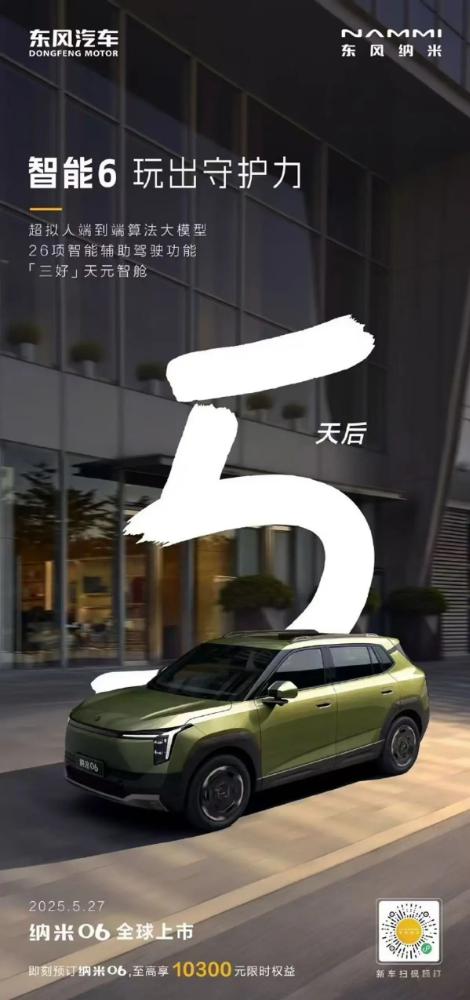 喜欢新能源车的朋友注意啦!近日,东风纳米官方带来重磅消息,旗下全新纯电SUV东风纳米06即将在5月27日正式与大家见面。早在4月28日,这款备受期待的车型就已开启预售,5款车型,8.99-11.99万元的预售区间,吸引力十足。