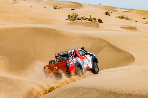 值得一提的是,昨天的比赛火炮战队表现亮眼,面对融合峡谷涉水、高速戈壁与危险河道等长达330多公里的极限挑战,车手张亚、白耀联袂V6火炮,演绎速度与技巧的巅峰对决,展示了人车合一的极致竞技状态,最终以5小时31分35秒的卓越成绩横扫复杂地形,为赛段画上圆满句号。