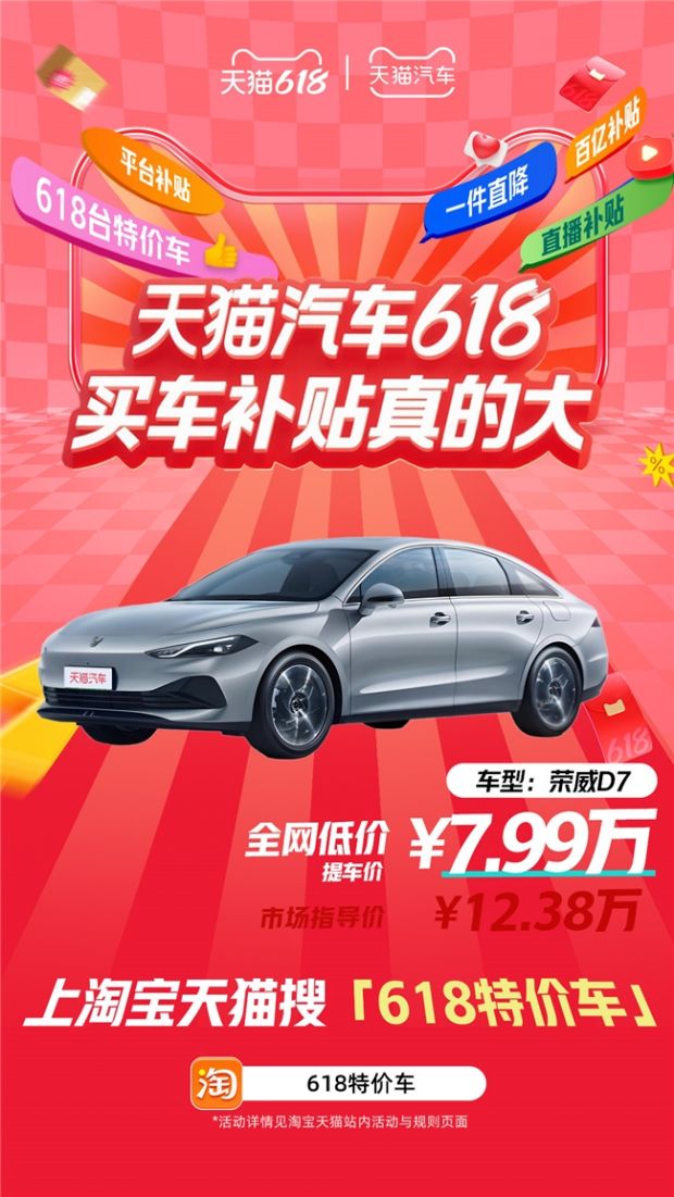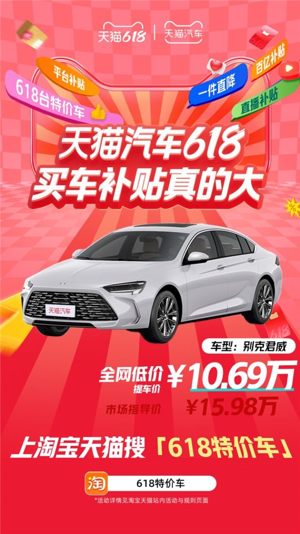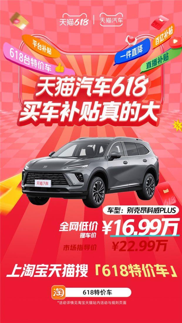 天猫汽车618,买车补贴真的大!搜索【618特价车】,618台特价车等你来抢!