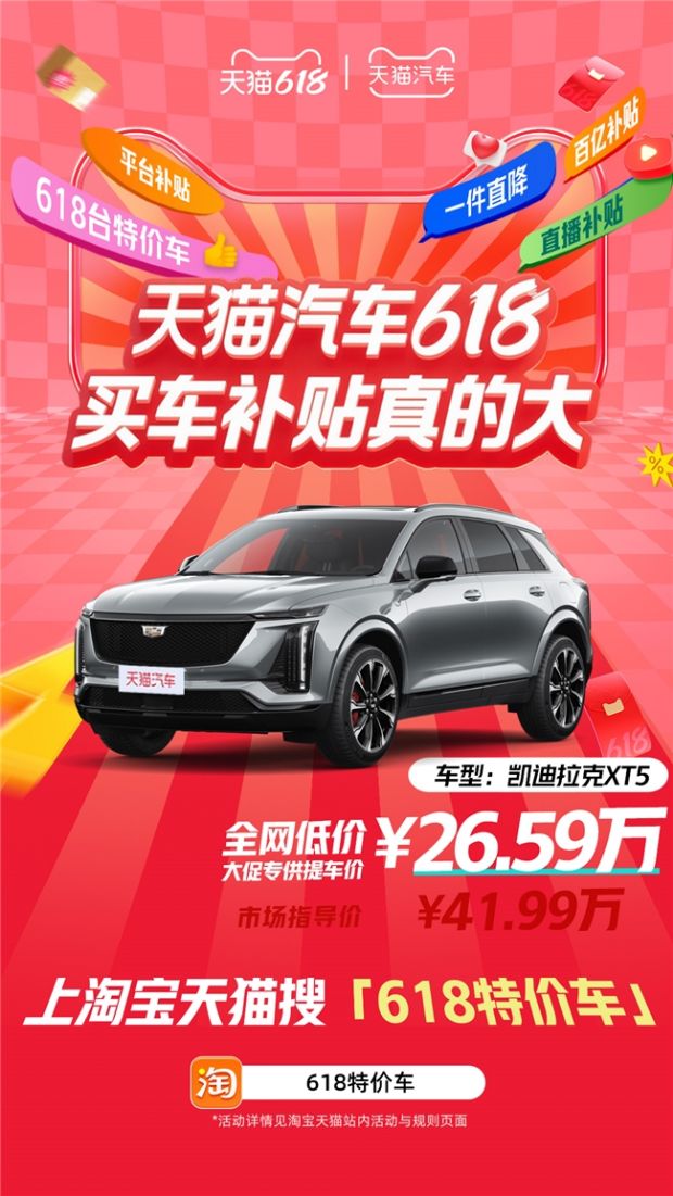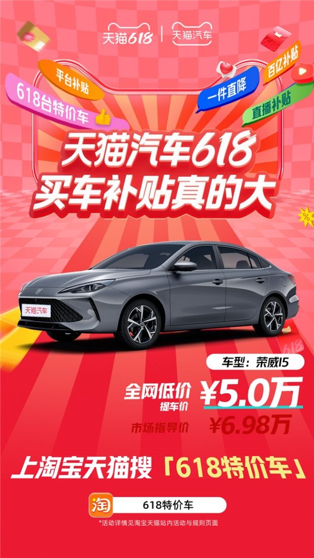 ● 百亿补贴,热门车型直降到底!作为天猫汽车618的核心活动之一,百亿补贴覆盖了众多品牌热销车型,价格优惠力度空前。消费者只需搜索【618特价车】,即可轻松找到补贴车型,享受超值价格。