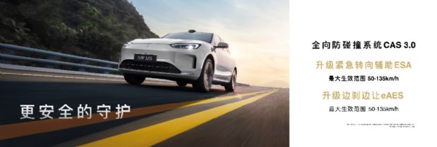 此外,紧急转向辅助ESA与e-AES边刹边让,最大生效范围50-135km/h,进一步提升了车辆的主动避险能力,当遇到突发情况无法通过制动避免碰撞时,车辆会在安全范围内智能辅助进行转向避让,最大限度地减少事故损失,让驾乘者在紧急情况下的应对更加从容。