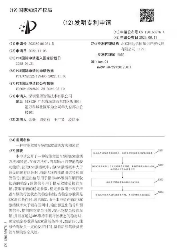 在智能驾驶技术飞速发展的当下,安全始终是行业关注的核心。就在6月17日,深圳引望智能技术有限公司带来了一项重磅消息——其申请的“一种智能驾驶车辆的ESC激活方法和装置”专利正式公布。该专利于2022年11月3日提交申请,如今的公开,无疑为智能驾驶安全领域注入新活力。