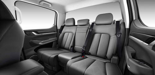 作为国产高端皮卡旗舰车型,山海炮2.4T全球版以高端乘用车标准打造,采用创新双后围设计,配合迷宫式出气口、隐藏式后门缝、车箱与车身间的全密封设计以及尾翼导流等技术,打造深海级静谧空间。车型首创后排座椅电动调节,最大乘坐靠背角达33°,配合1.6m超宽肘部空间,最大化实现前后排空间平权,乘坐更舒适。采用五连杆后悬+后减震器外置全地形舒适悬架设计,侧倾控制能力更佳、整车稳定性更好,驾乘舒适性比肩豪华SUV。