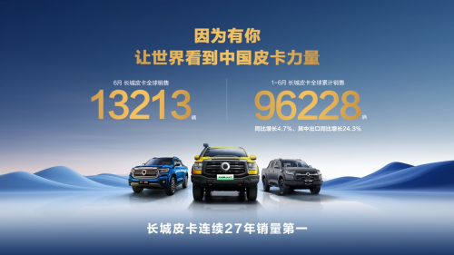 作为中国皮卡领导者,长城皮卡也为中国汽车产业的稳健增长与出口强势贡献了坚实力量。今年1-6月,长城皮卡全球累计销售96228辆,同比增长4.7%;海外累计销售30083辆,同比增长24.3%,以绝对销量优势,斩获中国皮卡品牌出口第一,持续夯实长城皮卡行业领导者地位。