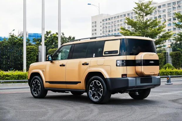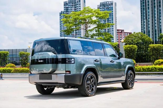车身尺寸方面,4999/1995/1865mm的长宽高与2920mm轴距,赋予钛7宽敞的5座空间。24度接近角与25度离去角的通过性参数,配合悬浮式车顶、外扩轮眉及两种样式轮圈,兼顾城市通勤与轻度越野需求。尾部设计同样极具辨识度,外挂式备胎造型经典,发光尾标与贯穿式黑色饰板提升科技感,后车窗视野开阔,实用性与设计感兼备。