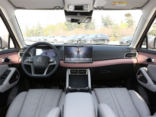 内饰方面,元UP相较于元PLUS线条更显硬朗,层次感也更为充足。中控台以8.8英寸仪表屏和12.8英寸中控屏为核心,搭载DiLink车联系统,由比亚迪D100芯片提供算力,具备四音区交互等丰富功能。座舱内还配备了手机无线充电等便利性功能,提升了使用便利性。
