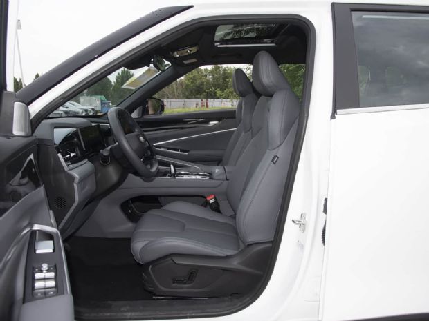 乘坐空间表现不错,主驾座椅6向电动调节,副驾4向电动调节,前排座椅支持3档加热/通风,主驾还有迎宾和便捷下车功能。空间数据上,前排腿部1034mm、头顶46mm,后排膝部147mm、头顶37mm,后排坐垫长525mm,座椅放倒后后备厢纵深达1930mm。全车有37处储物空间,后备厢容积580L,另有75L隐藏空间。