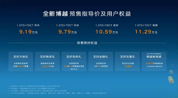 据官方消息,2026款吉利博越即将于8月17日正式上市,此前已于8月2日开启预售,共推出4款车型,预售价区间为9.19-11.29万元。作为中期改款车型,新车在外观和内饰上有不少调整,且全系标配Flyme Auto座舱系统,动力则延续1.5T+7DCT的组合。